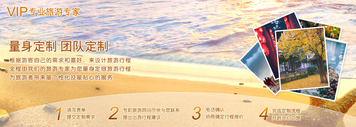跟團游太刻板?自助游太辛苦?做攻略沒時間?可是又想自由旅行?本旅行社全新推出升級版?zhèn)€性定制旅游,讓定制旅游不再高不可攀。采用全透明底價+10%服務(wù)費的方式,讓消費更加輕松。 深山旅行社為您貼身挖掘旅游意愿, 設(shè)計旅行方案的同時,更為您提供更深入,更專業(yè),更具本土特色的旅游攻略和細(xì)節(jié)安排。 而您需要做的,只是填寫一個簡單的表單而已,剩下的就交給深山旅行社的專業(yè)團隊吧77711