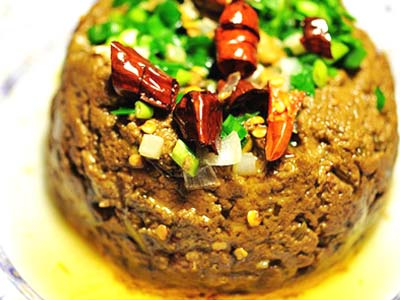 1、把老抽和黃醬倒入一個大碗內(nèi),然后加入150毫升清水用筷子慢慢調(diào)勻;京蔥切成碎末備用;
