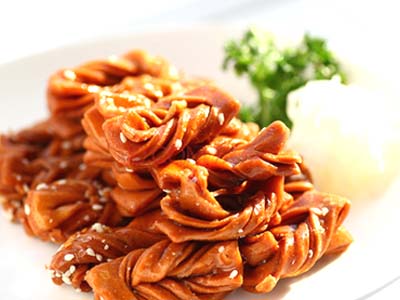 蜜麻花棕黃油亮,質(zhì)地綿潤松軟,甜蜜可口。南城的南來順飯莊的蜜麻花由于常年制作。質(zhì)量穩(wěn)定,主要是放堿合適,沒有酸口,炸得透,吃蜜均勻,達(dá)到了松軟綿潤的質(zhì)量要求,1997年被評(píng)為"北京名小吃"和"中華名小吃"。