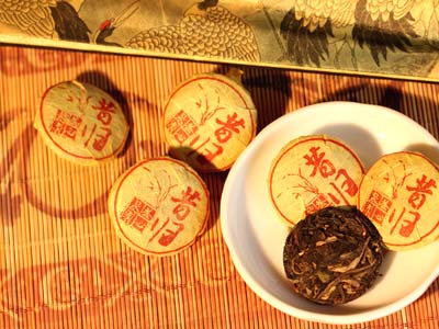 屬于黑茶,因產(chǎn)地舊屬云南普洱府(今普洱市),故得名。現(xiàn)在泛指普洱茶區(qū)生產(chǎn)的茶,是以公認(rèn)普洱茶區(qū)的云南大葉種曬青毛茶為原料,經(jīng)過后發(fā)酵加工成的散茶和緊壓茶。外形色澤褐紅,內(nèi)質(zhì)湯色紅濃明亮,香氣獨(dú)特陳香,滋味醇厚回甘,葉底褐紅。有生茶和熟茶之分,生茶自然發(fā)酵,熟茶人工催熟?!霸疥愒较恪北还J(rèn)為是普洱茶區(qū)別其他茶類的最大特點(diǎn),“香陳九畹芳蘭氣,品盡千年普洱情?!逼斩枋恰翱扇肟诘墓哦?,不同于別的茶貴在新,普洱茶貴在“陳”往往會隨著時(shí)間逐漸升值